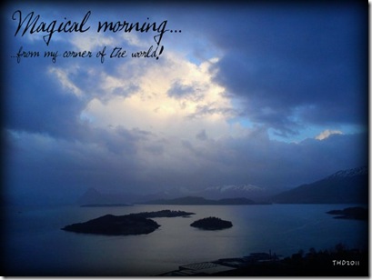 Det er så utruleg vakkert på Sunnmøre for tida!!! Dei lyse og varme kveldane lokkar oss til å tru at det er sommar. Vi har ikkje tid til å vere inne. Alt må gå fort, slik at vi kjem oss ut. I dag hadde vi fort-gjort-middag med ein smak av sommar. Nokre av oss åt inne, nokre ute og eg tok med meg den gode maten i handa medan eg gjekk på besøk til tantegulla på nabotomta!