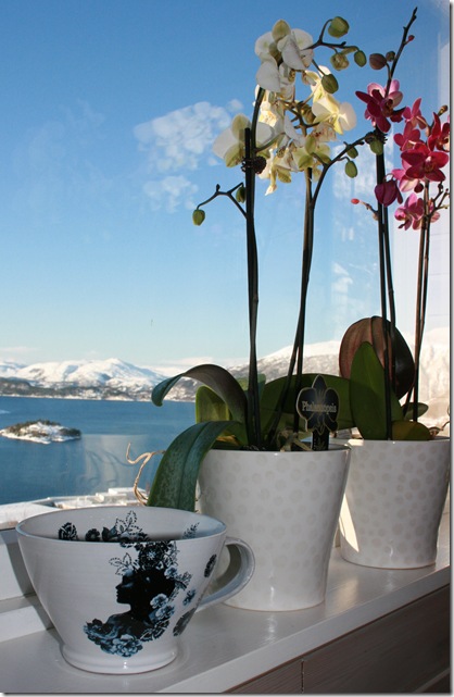 åh...flere syke...ja æ å...du, for ei vakker utsikt du har...nydelige blomster..og har sjøl noen orkideer som e klar førr å komme ut....ha god bedring....ps...koppan dine likte æ ..